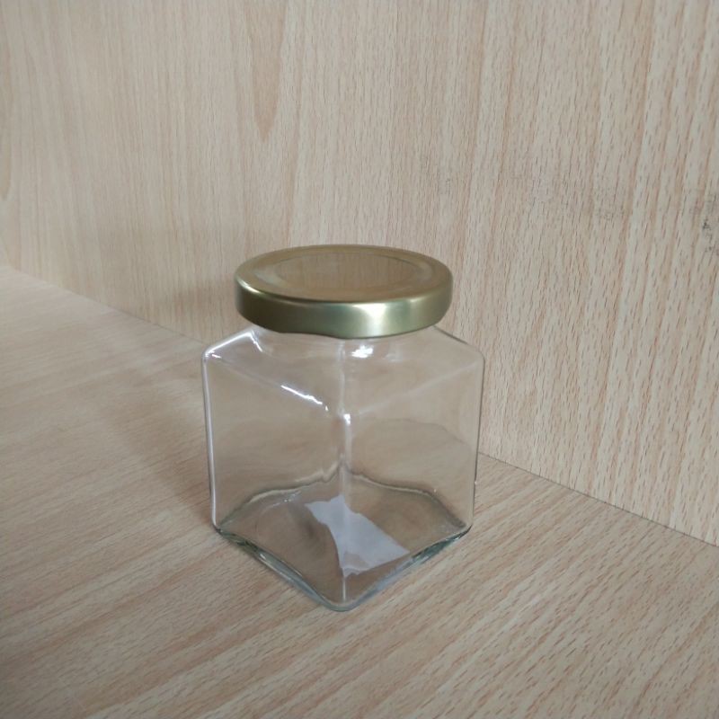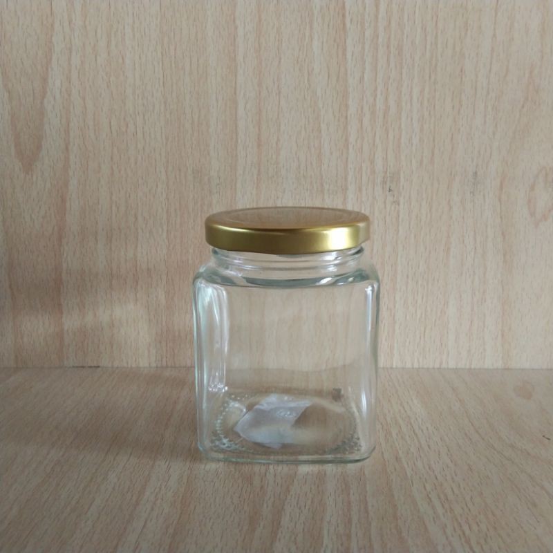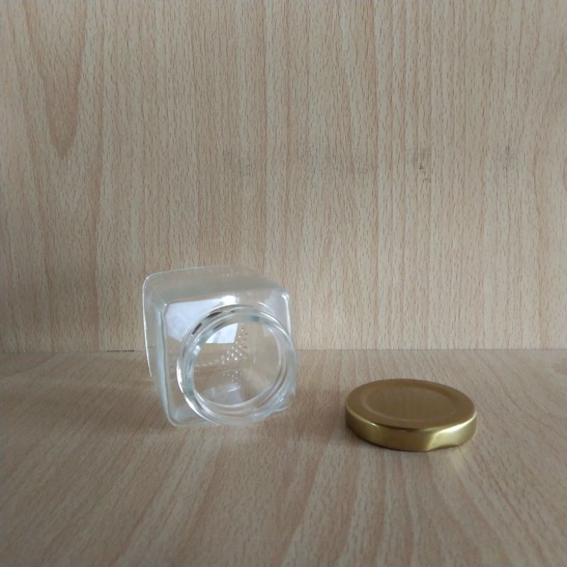 Botol Selai Kaca/Toples Kaca Kecil Kotak Tutup Gold 100 ml, 200 ml, 300 ml