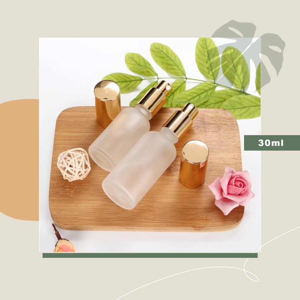 Botol Skincare Gold Kaca Fros Botol pump Botol Kemasan Kosmetik Botol Kosong Botol Serum Botol 30ml