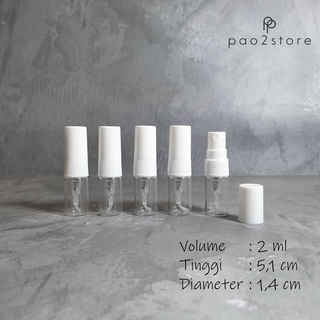 Botol Spray Kaca 2ml Bening Tutup PUTIH - Refillable Atomizer Travel Size untuk Parfum Decant