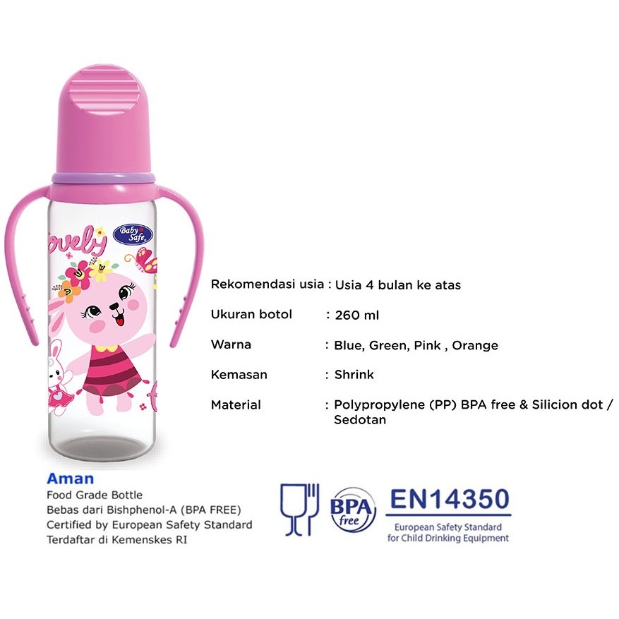 Botol Susu Baby Safe Feeding Bottle/ Botol Susu Bayi 150ml 260ml handle (NEW)