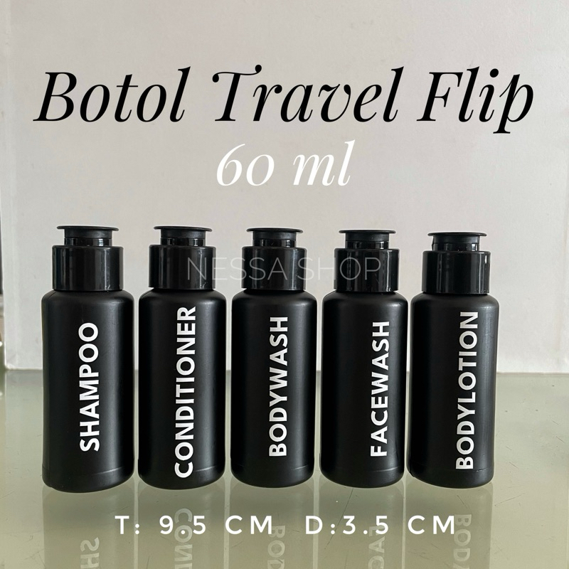 Botol Travel Sabun Cair 60 ml - MINIMALIS BLACK (Toiletries) - Shampoo Bodywash Lotion Sabun