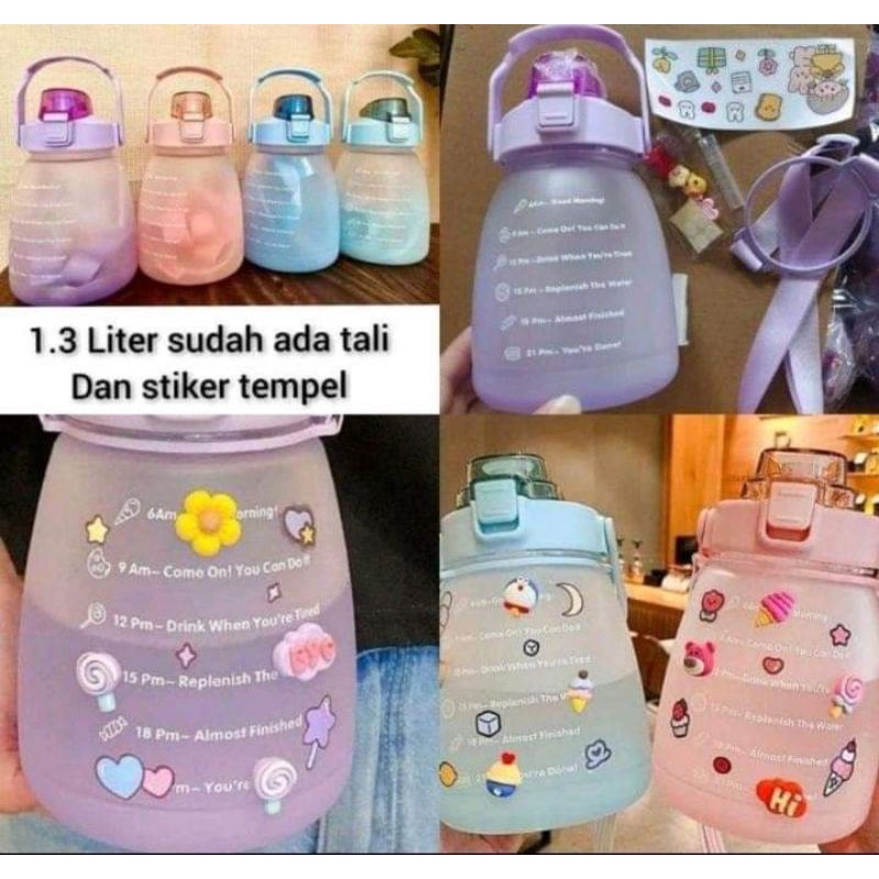 Botol Viral Oval Rainbow 1,3L Botol Viral Gemoy Botol viral bulat ada tali dan sedotan