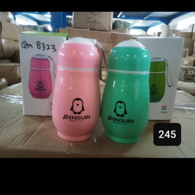 Botol air minum dalam stainless 304 300ml import / botol minum penguin / botol termos tahan panas