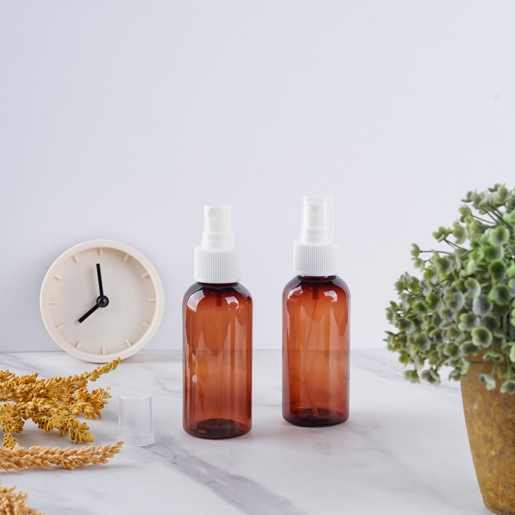 Botol coklat Plastik 100 ml Tutup Spray