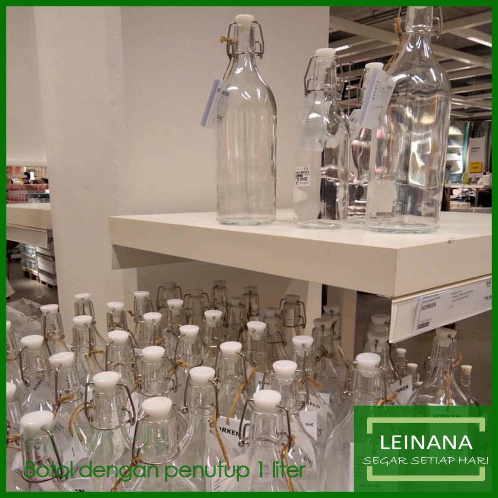 Botol kaca 1 liter BOTOL DENGAN TUTUP / botol kaca bening BOTOL MINUMAN