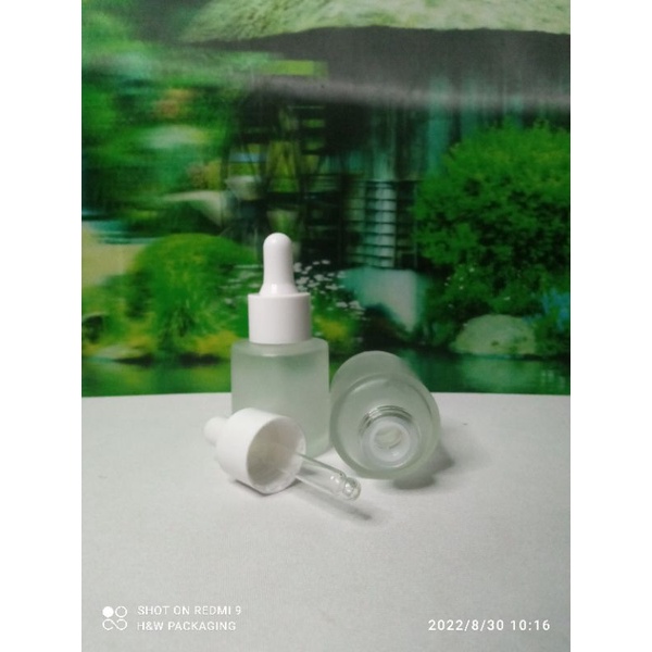 Botol kaca 20ml prosted , ring karet putih dan varian print tgl exp date