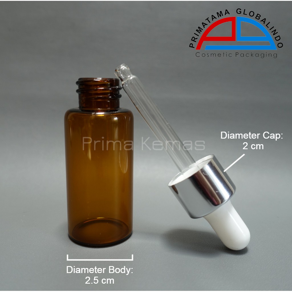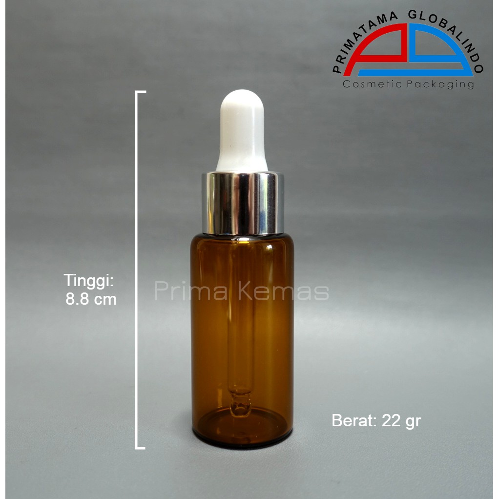 Botol kaca pipet 20 ml - botol kaca serum/ tetes - Botol Kaca Coklat 20 ml Pipet Ring Silver