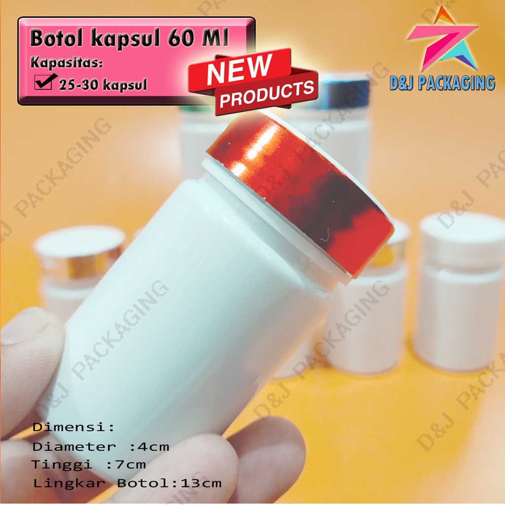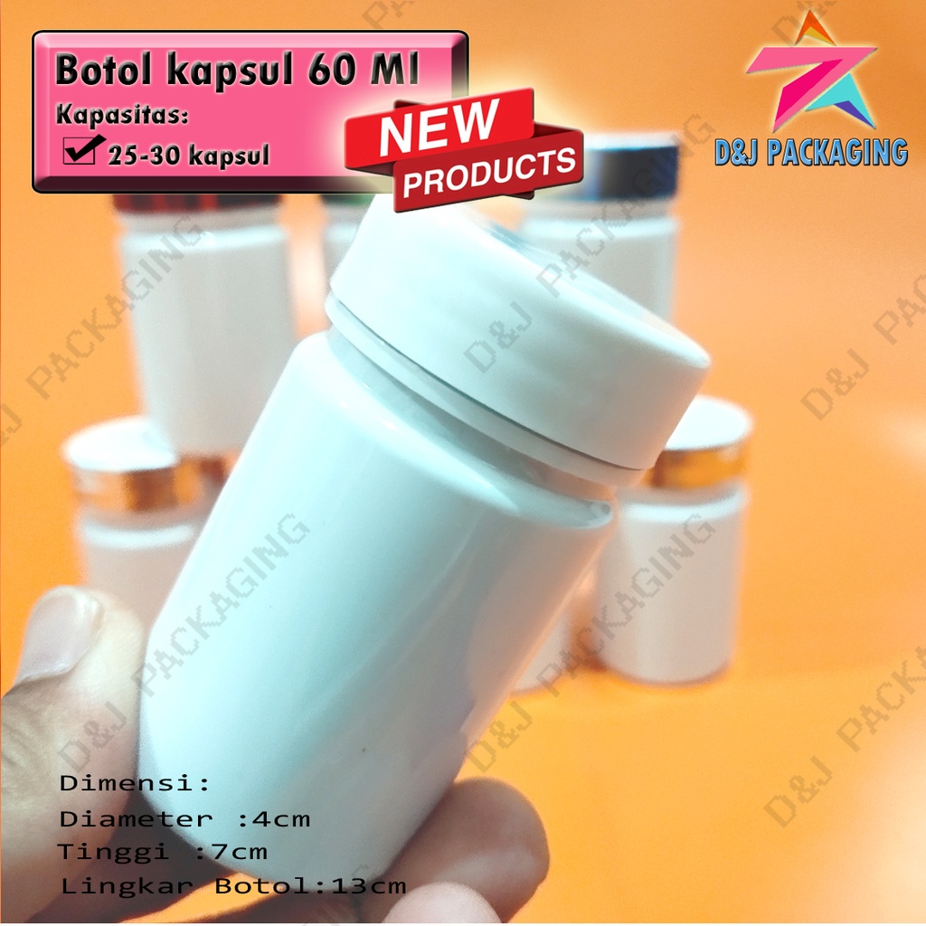 Botol kapsul 60ml / botol kapsul isi 25-30 Putih + Plug Inner