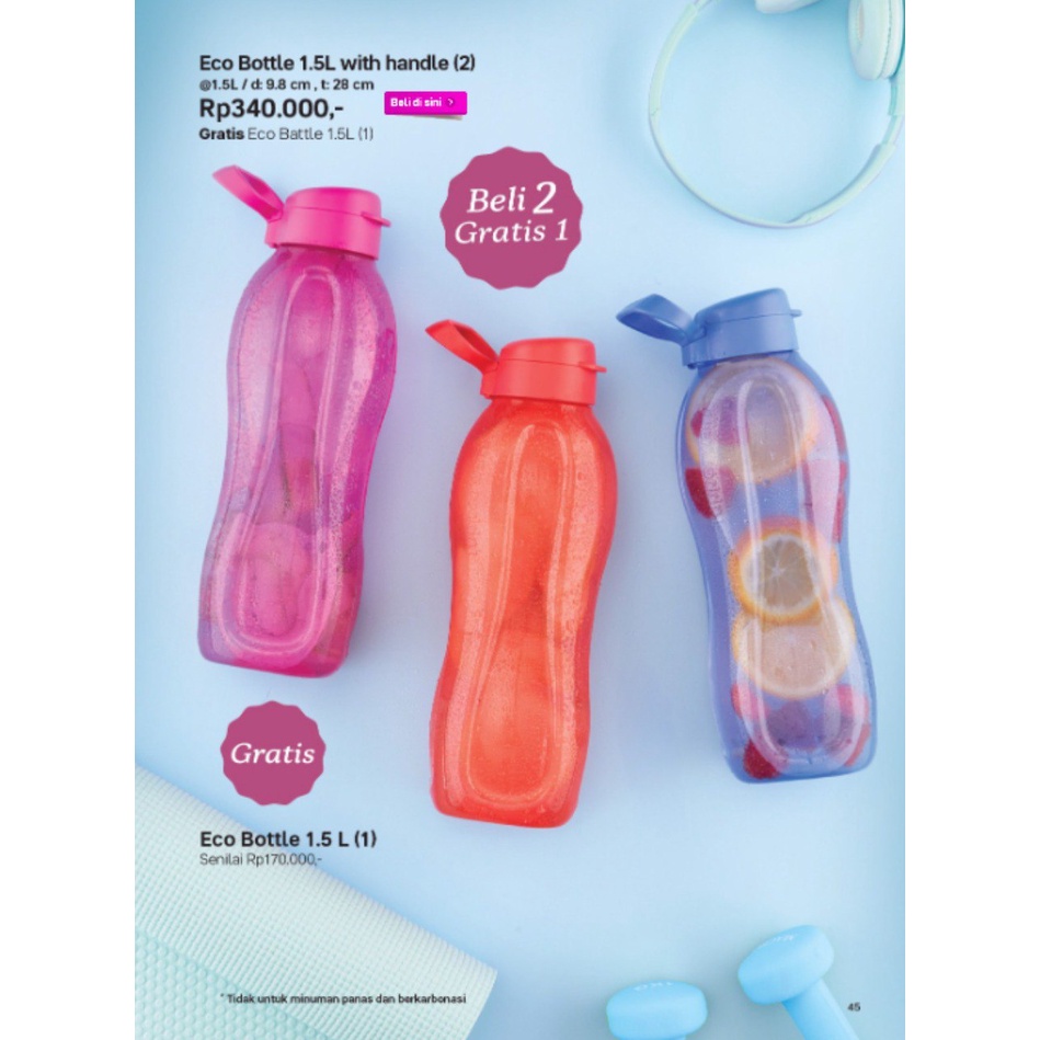 Botol minum Tupperware dengan gagang / botol minum olahraga / ECO Bottle tupperware / Tumbler 1.5 liter jubo fliptop
