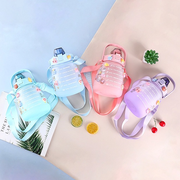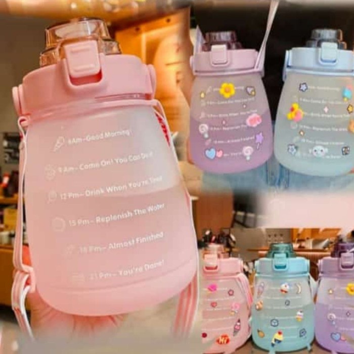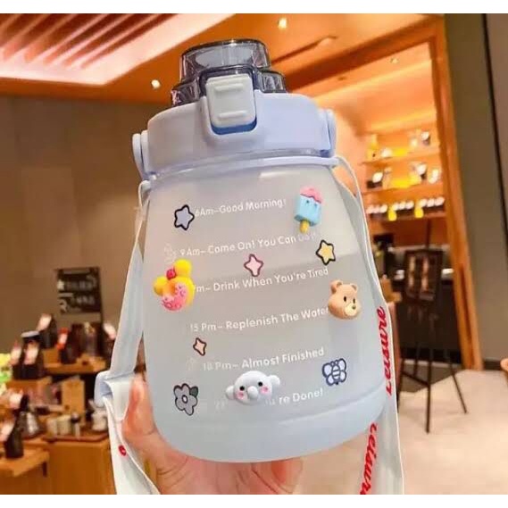 Botol minum Viral / Botol gemoy / botol lucu / botol bulat 1.3 L free stiker 2D 3D & tali / Anak/ Dewasa