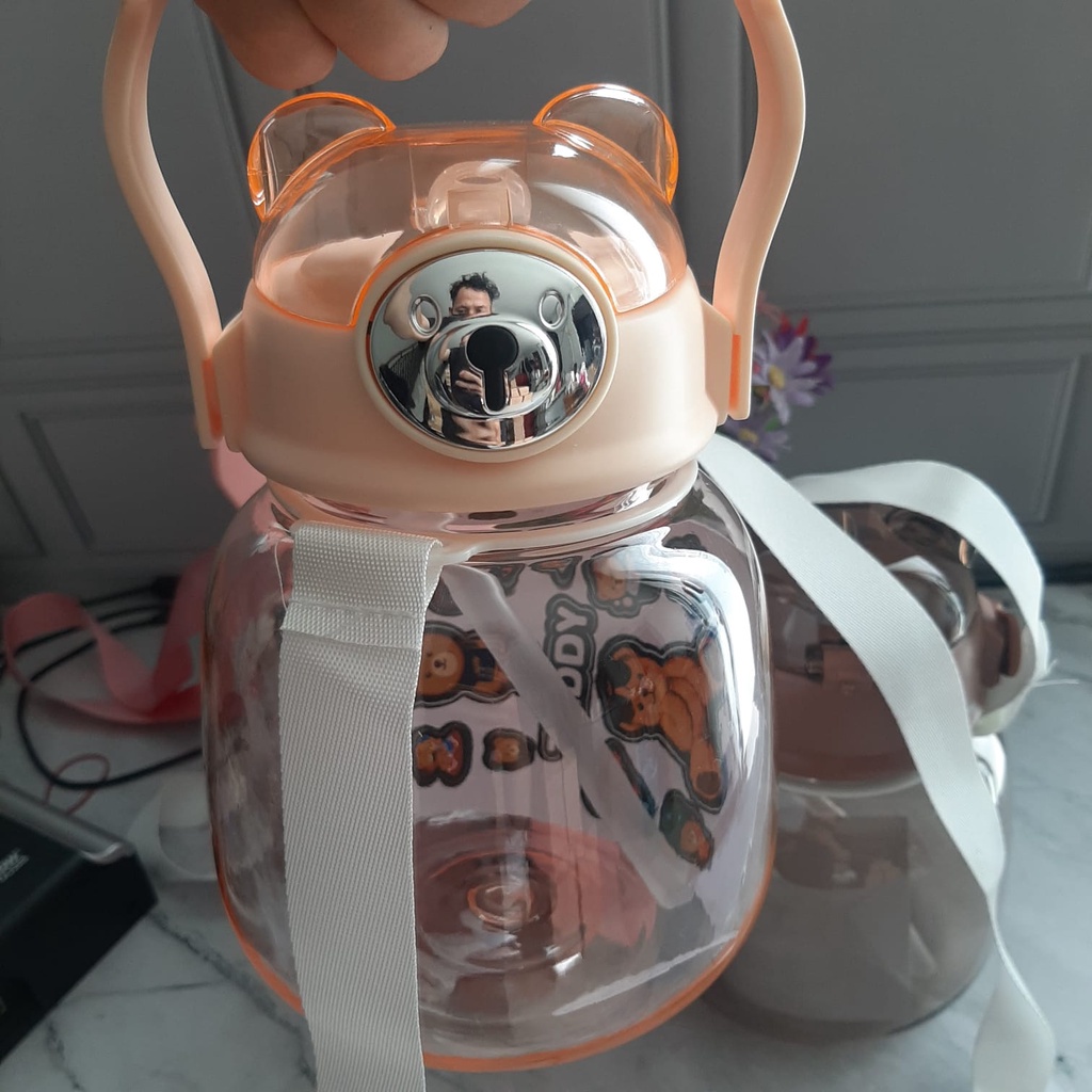Botol minum anak karakter beruang teddy bear botol air minum anak viral lucu dengan tali 1,3 liter
