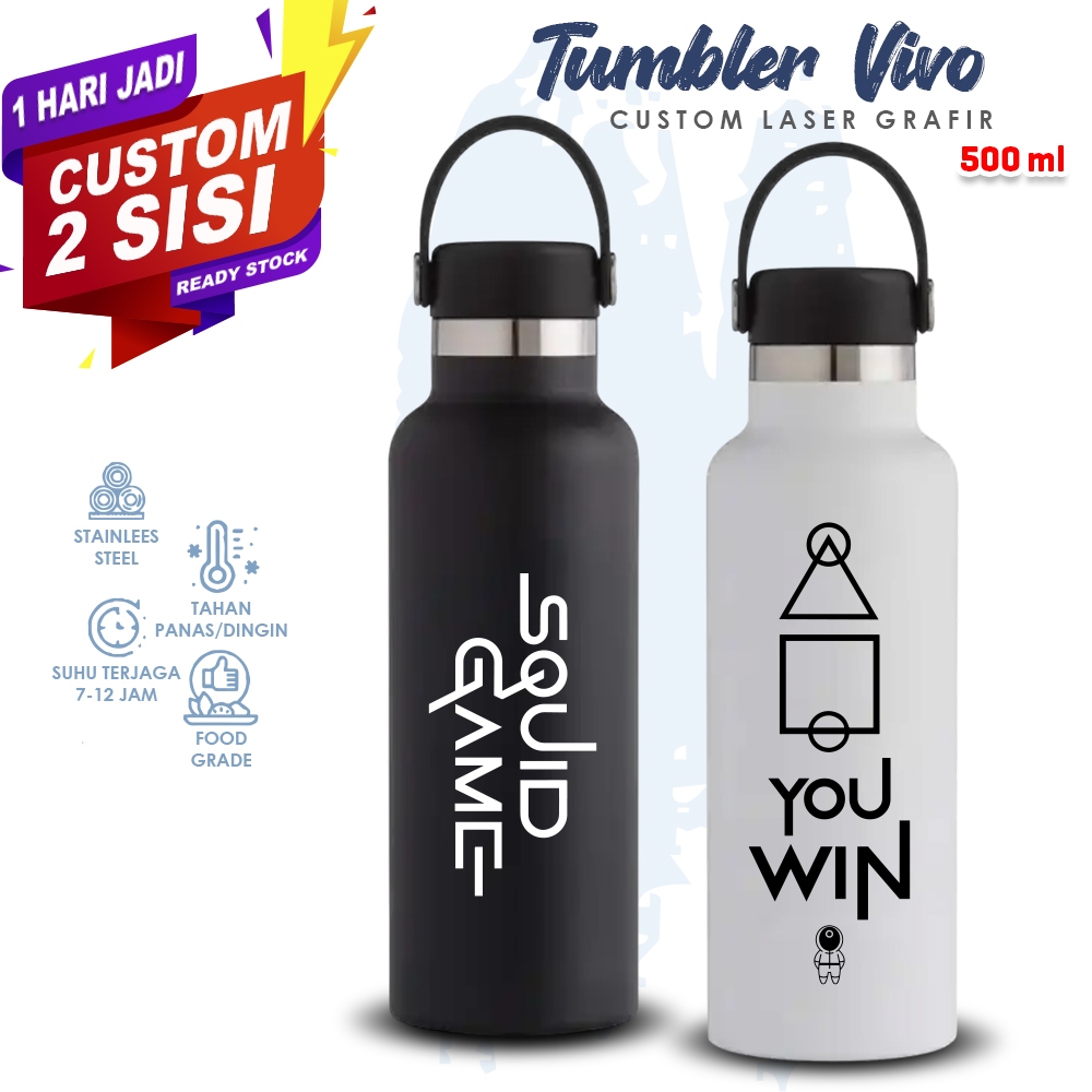 Botol minum stainlees steel vivo 500ml + gratis custom nama ? botol minum cetak logo/Botol minum sablon nama/ botol minum grafir logo/ tumbler souvenir/ souvenir murah? souvenir sultan