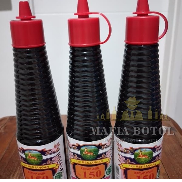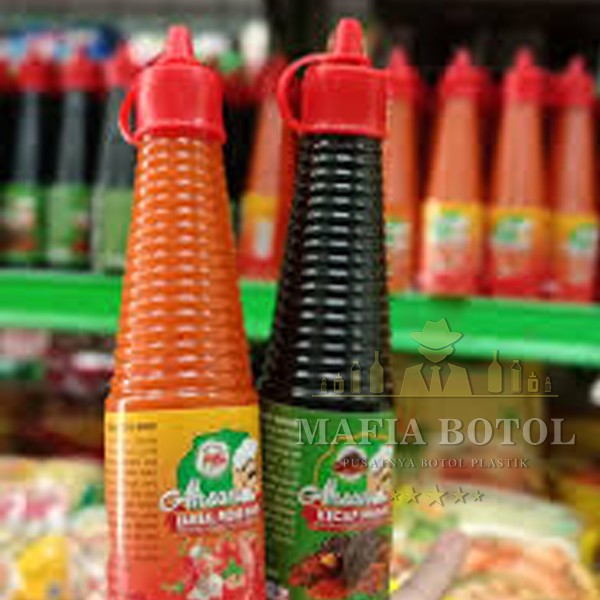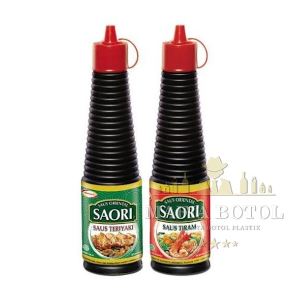 Botol plastik kecap ketchup saos saus cuka saori fliptop merah 140 ml PET tebal kosong kerucut