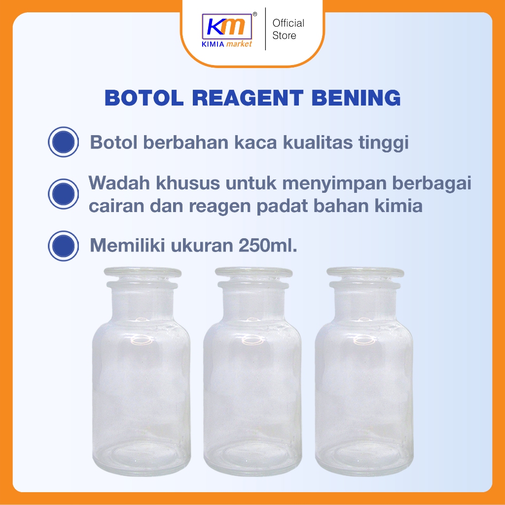 Botol reagen bening atau botol pereaksi steril laboratorium 250 mL