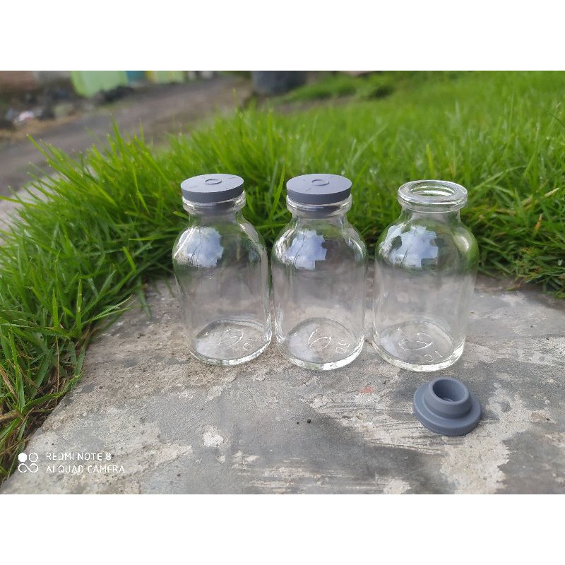 Botol vial 20 ml/botol kaca mini vial tebal + tutup rubber stopper