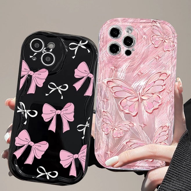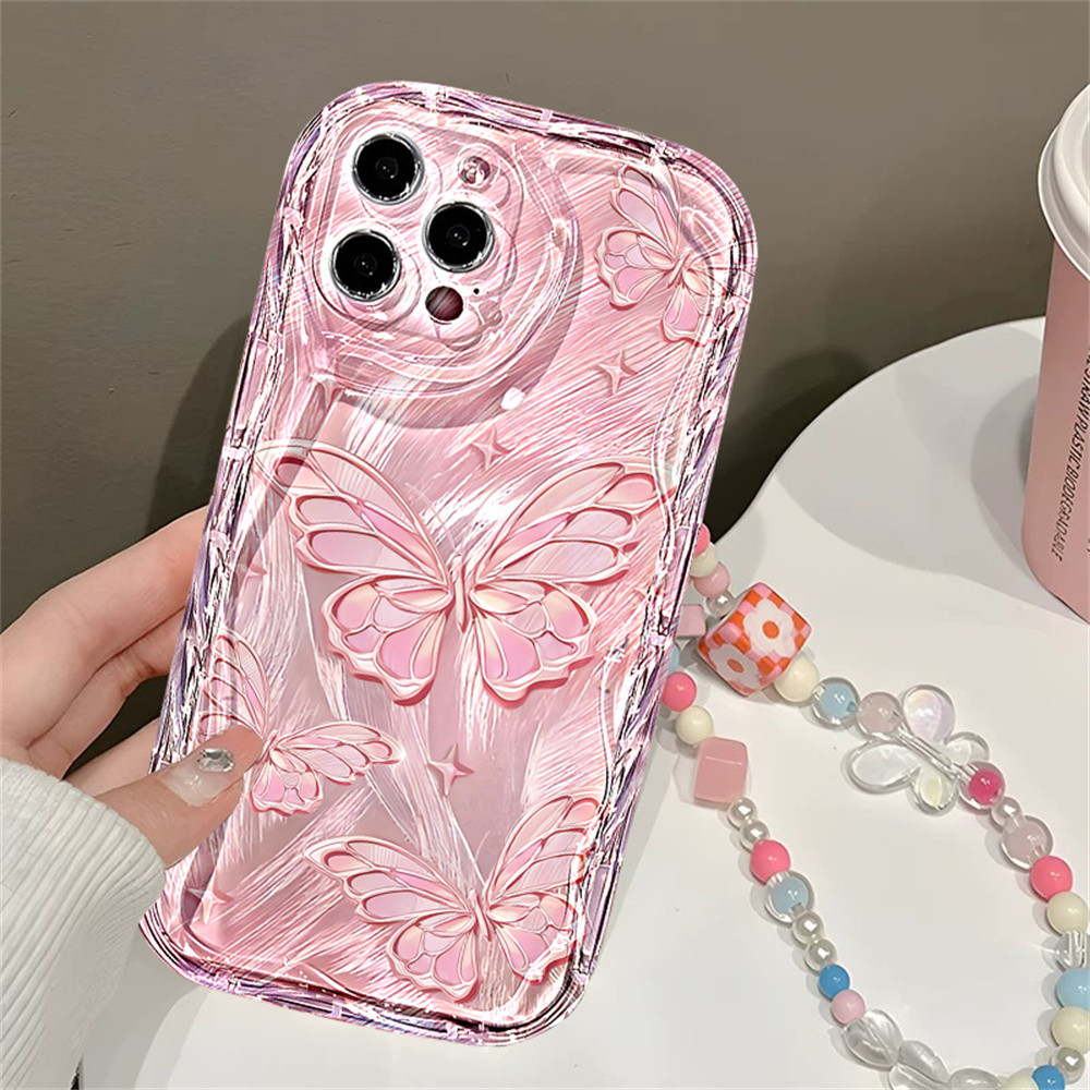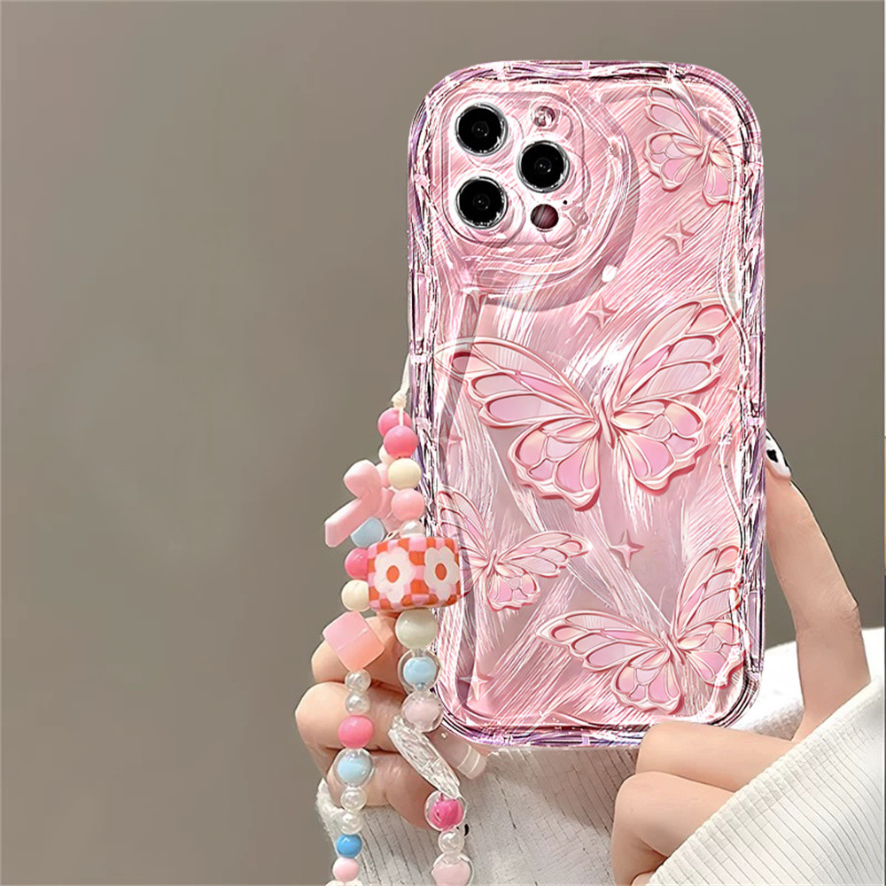 Bow Casing hp iPhone 11 Case iPhone 7 Plus 12 14 13 15 Pro Max iPhoneXR 8Plus X XS Max iPhone 6s 7 8 6 Plus XR Lanyard INS Pink Bowknot and Butterfly Soft Phone Case