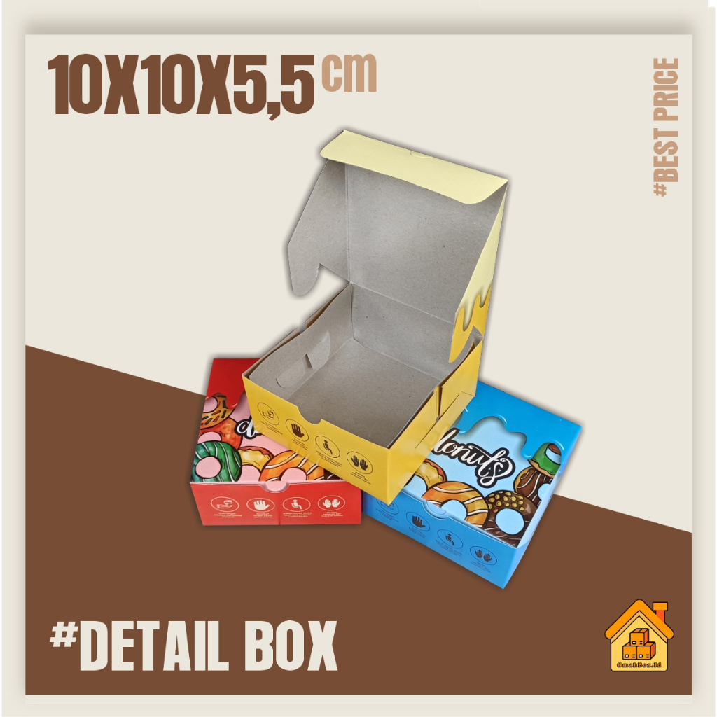 Box 10x10x5,5 cm | Donat isi 1| box cake | box donat | box kue | box mini rice | paper Lunch Box | box dimsum | box takoyaki