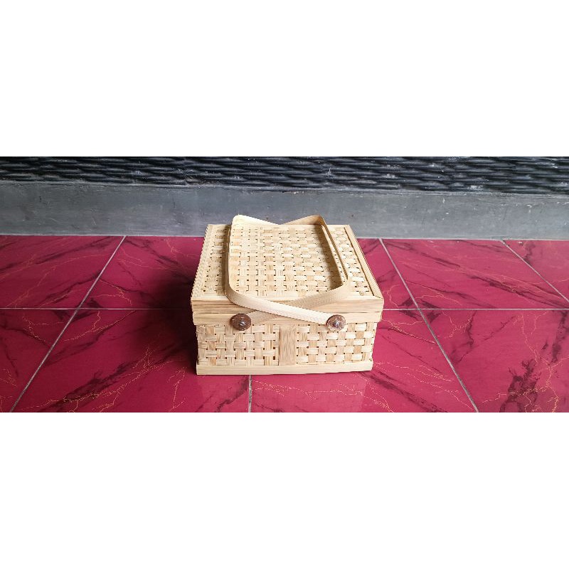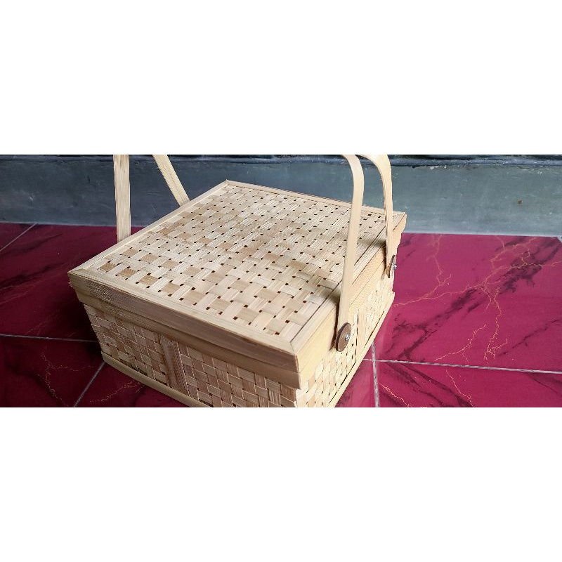 Box Anyaman Bambu | Kotak Rantang Bambu Lubang | Parcel Bambu | Kotak Tangkai 2 | 25cm