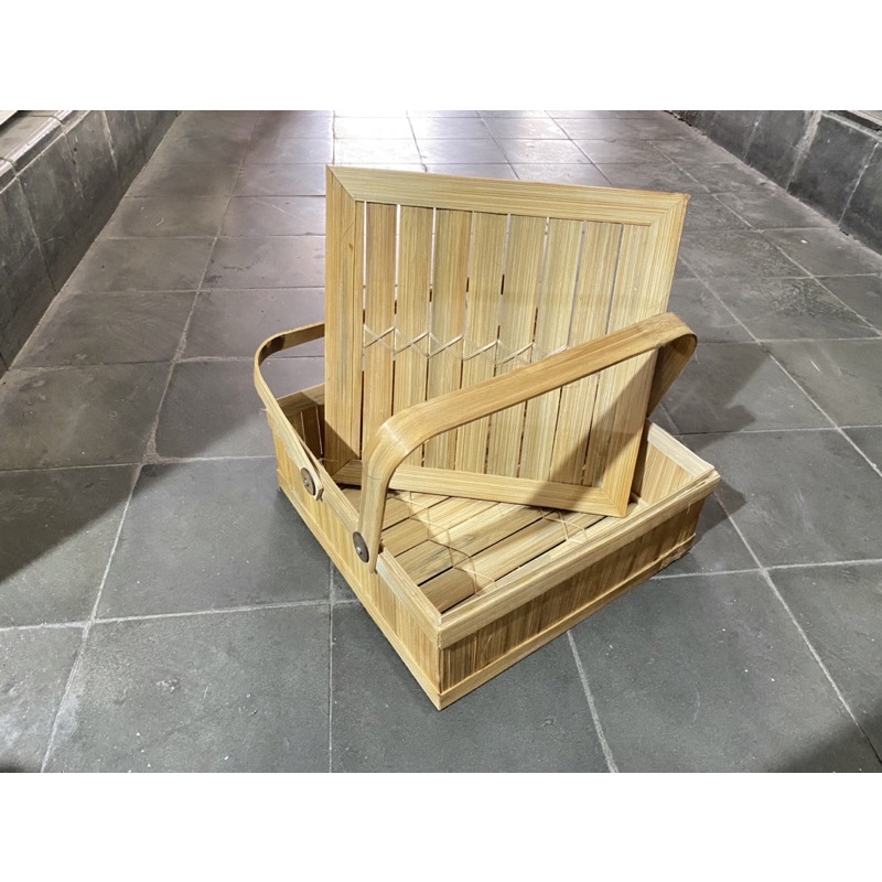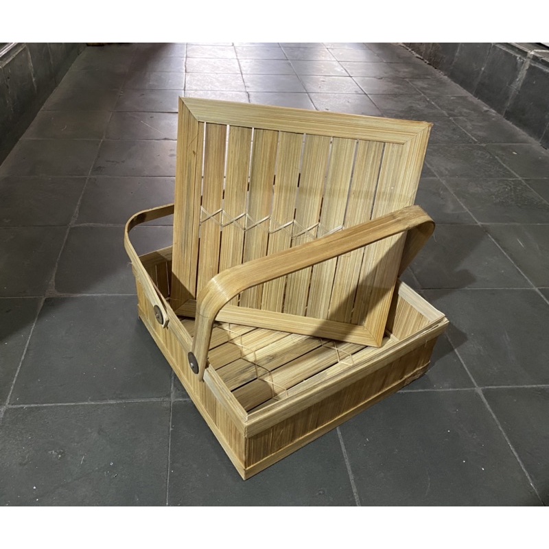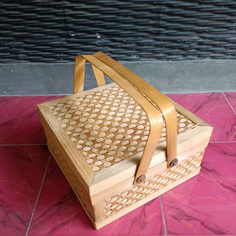 Box Bambu Anyaman dan Wilah | Rantang Bambu kotak | Kotak Bambu tangkai | 30x30 cm