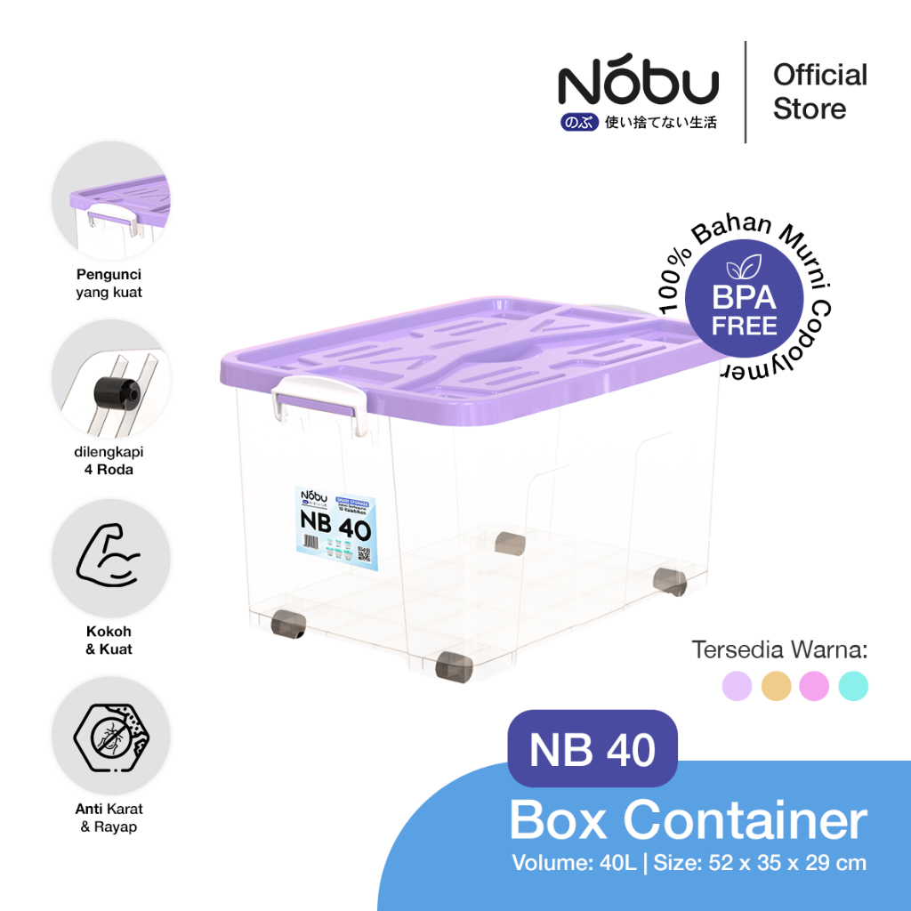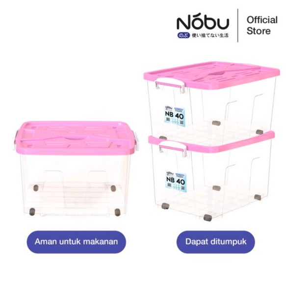 Box Container Nobu 40 Liter (Bening Transparant) - Container Box Plastik - Box Plastik Plus Roda - Box Plastik Serbaguna Food Grade