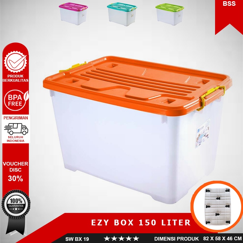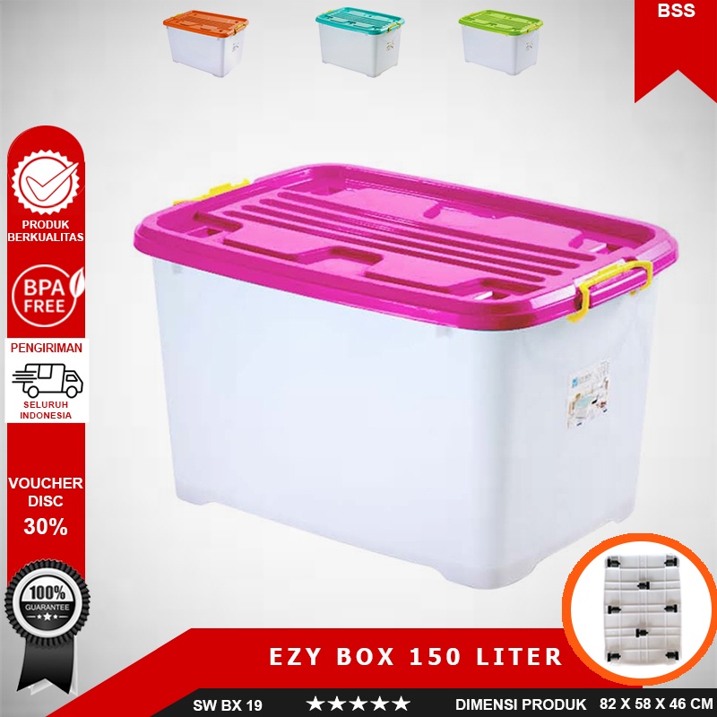 BOX CONTAINER 150 LITER Ezy | Kotak Penyimpanan Barang Besar Serbaguna | Dengan Roda + Bahan Plastik Tebal Kuat - ID.BSM