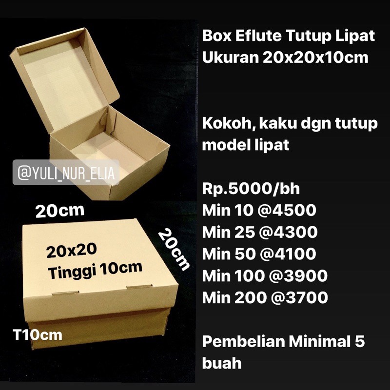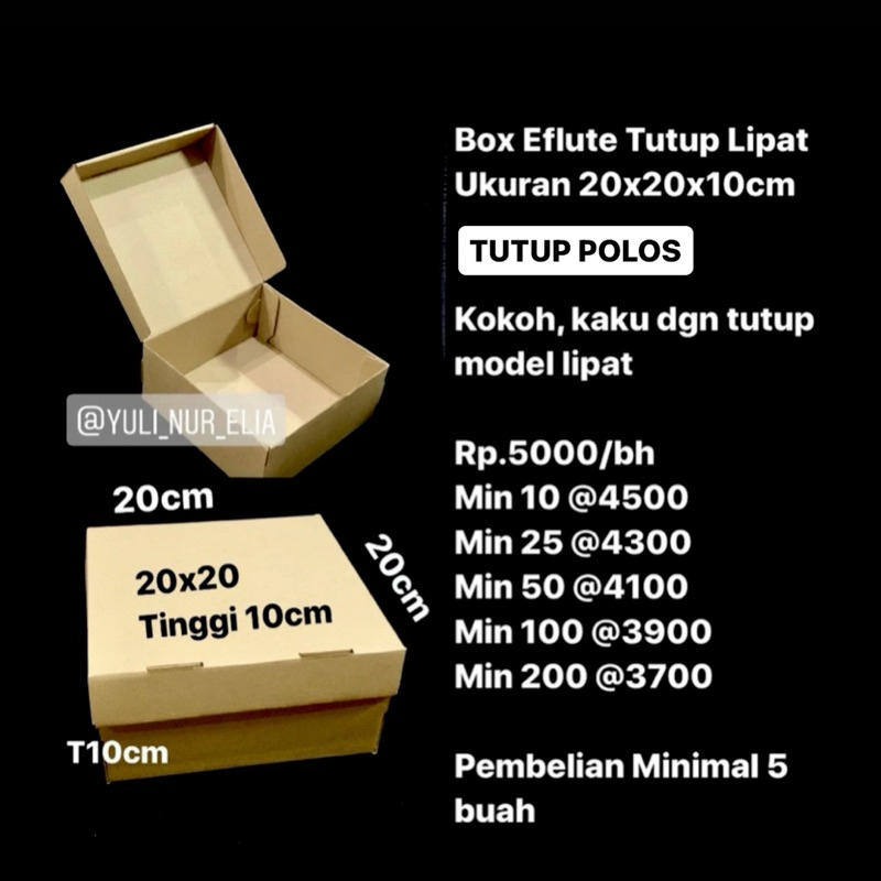 Box Eflute Tutup Lipat Ukuran 20x20x10cm UKURAN LUAR