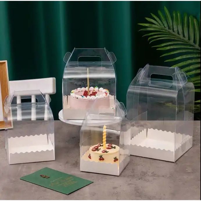 Box Mika Kue / Kotak Kue Cake Mika Tenteng / Box mika handle kue bento mini tart box mini bening.