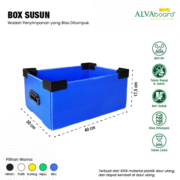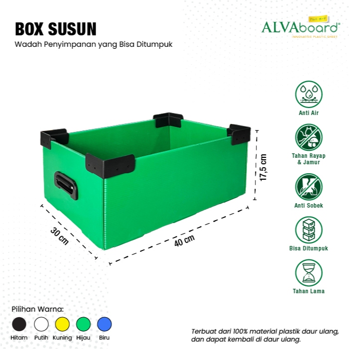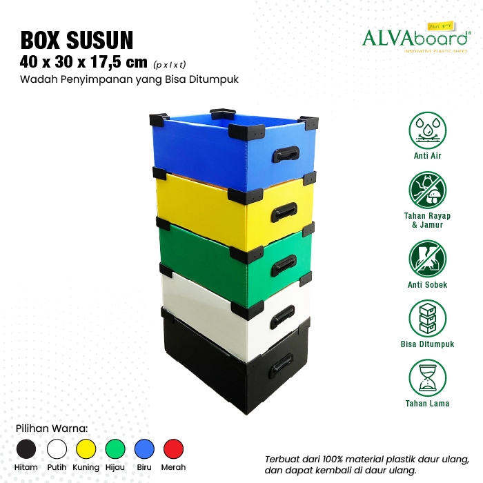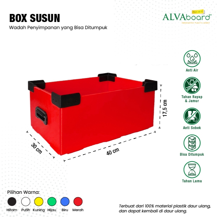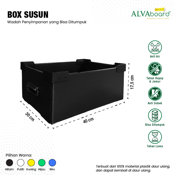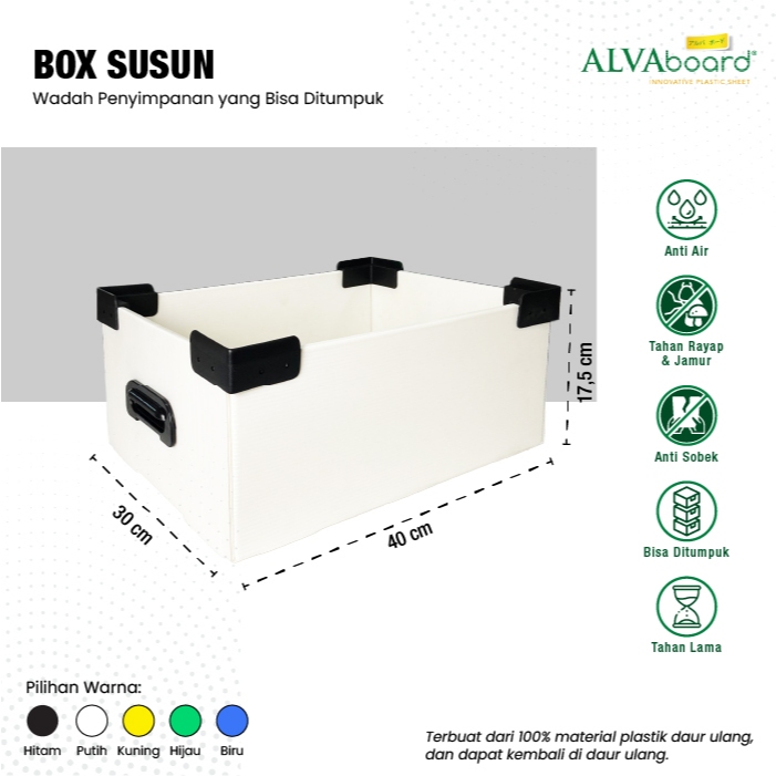 Box Susun Flatpack ALVAboard Kotak Penyimpanan Medium Ukuran 40x30x17,5 cm (P x L x T)