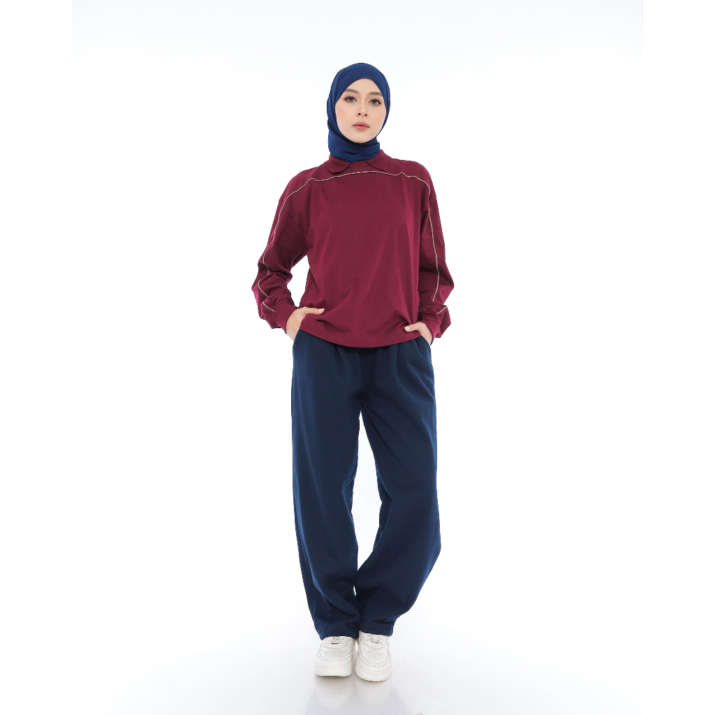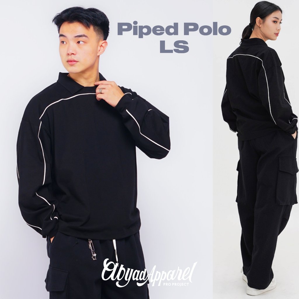 Boxy Piped Polo Long Sleeve - Polo Lengan Panjang Boxy Berlis Abyad Apparel Pro Project
