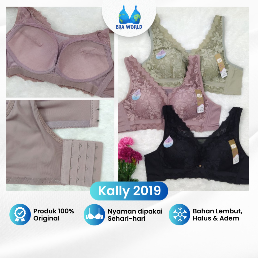 Bra Bh Renda Premium Kally 2019 Pakaian Dalam Tanpa Kawat Big Size Busa Tipis Kait 4 Daleman Underwear Wanita Halus Lembut Adem Model Cantik Ukuran 38 39 40 41 42 43 44 Original