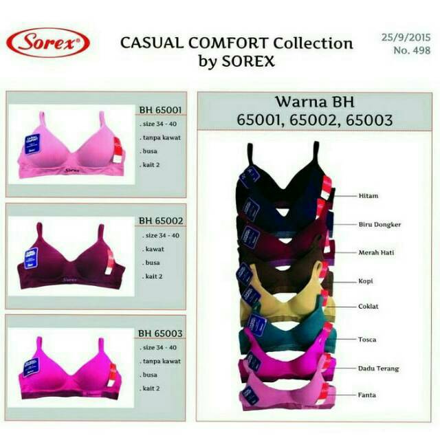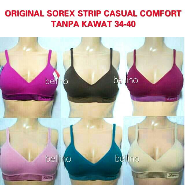 Bra Sorex Strip 65003 Bh Sorex Basic Tanpa Kawat Size 34-40 Bh Wanita Basic Casual Comfort Busa Tipis Lembut