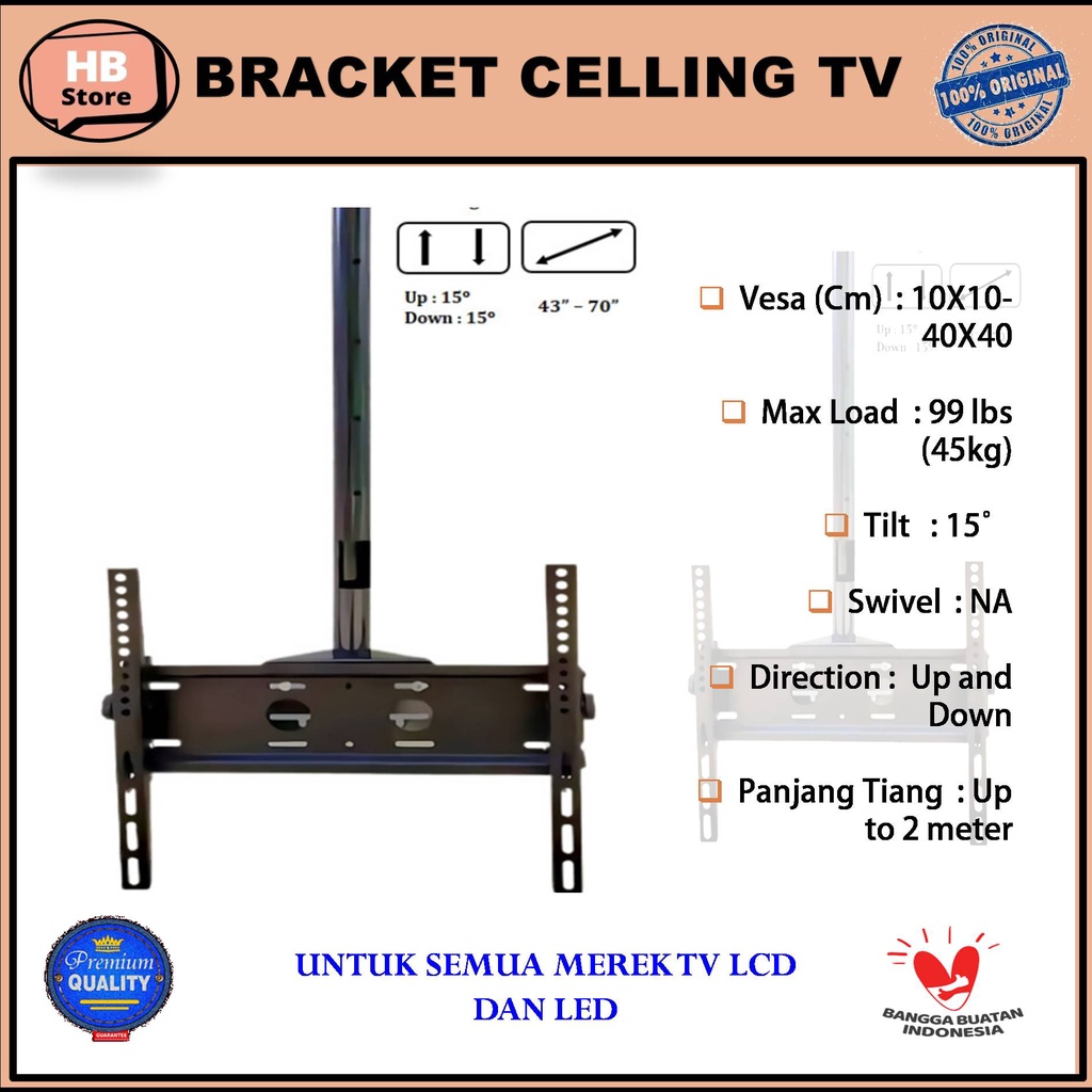 Bracket Breket Briket tv gantung plafon/dinding 32 40 43 45 50 55 60 65 inc inch