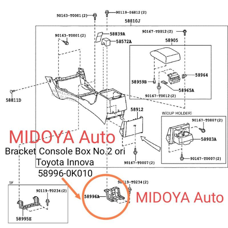 Bracket Console Box No.2 Toyota Innova ori 58996-0K010