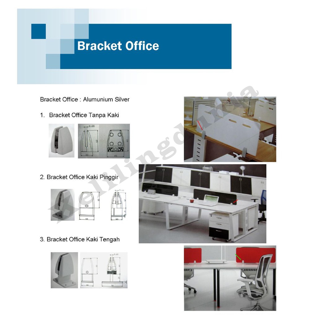 Bracket Partisi Office PUTIH STAINLESS PASIR Penjepit Kaca Kayu Stand Acrylic Sekat Meja