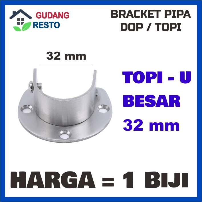Bracket Pipa Bulat Topi besi Sok DOP 1" 1 inch 25mm 25 mm Tiang Gorden Lemari Rel Sambungan Join Konektor 1inch Murah Kuat 32mm 32 mm
