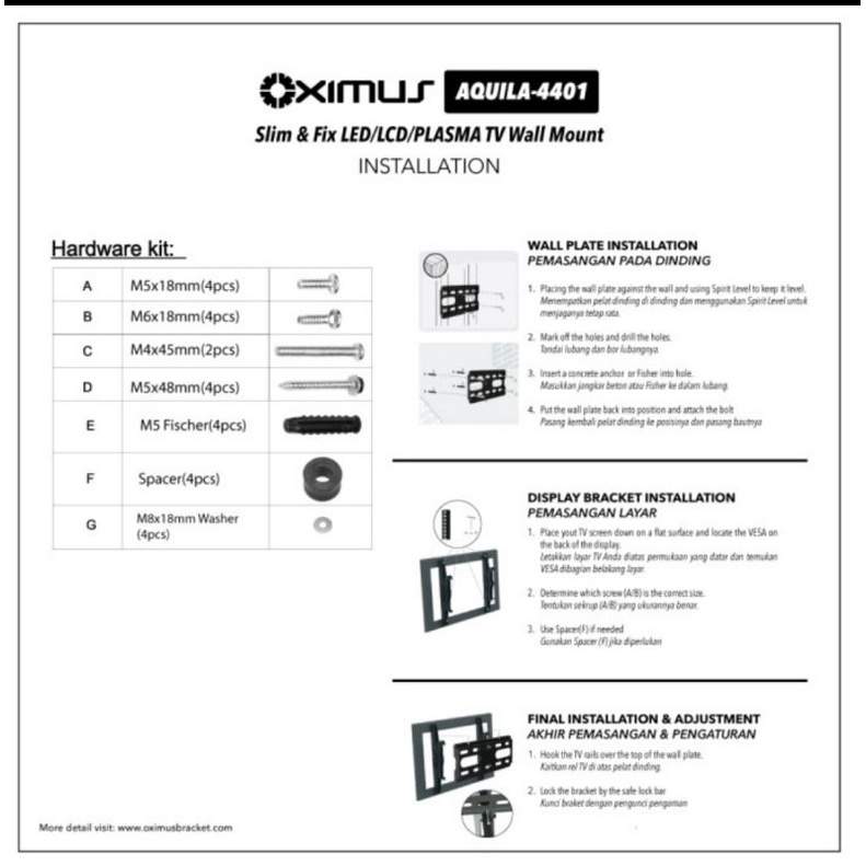 Bracket TV Led TV Universal 32-55 inch (Fixed/Tilt)