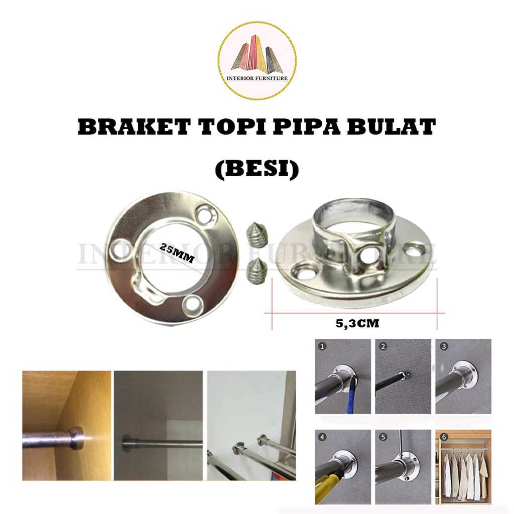 Bracket Topi / Braket Pipa Topi 1" (25mm) / Sambungan Dop Pipa Bulat stainless