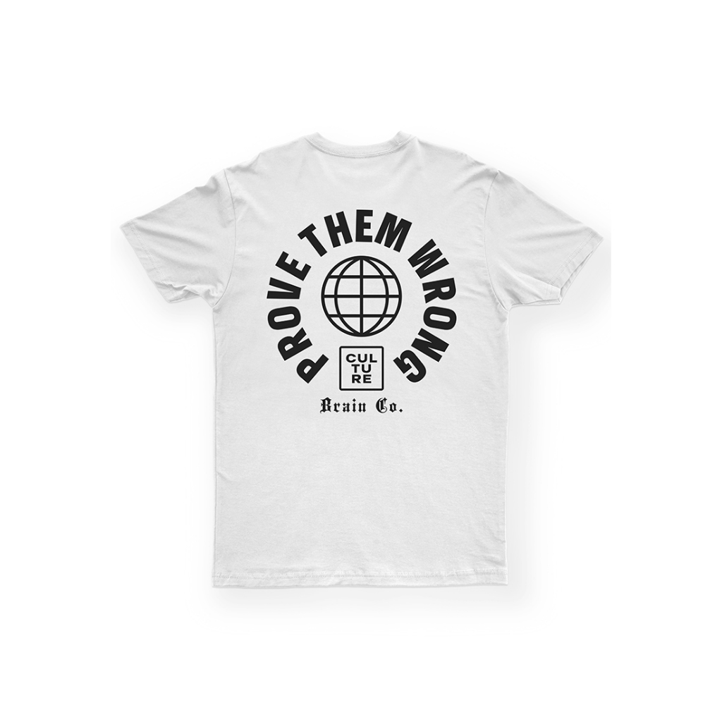 Brain Clothing Kaos Distro Streetwear | PROVE GLOBE #1 | Warna Putih, Hitam