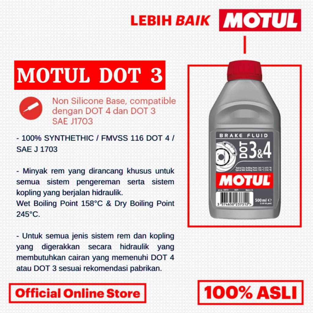 Brake Fluid Cairan Oli Minyak Rem ORIGINAL MOTUL DOT 3 & 4 & 5.1 Universal Motor Mobil FULLPACK 500 ML & 100 ML