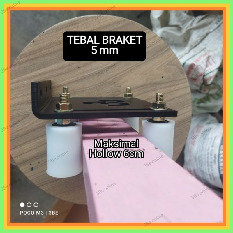 Braket roller nilon rumah roda atas penuntun pintu pagar dorong sliding besi stainless kayu