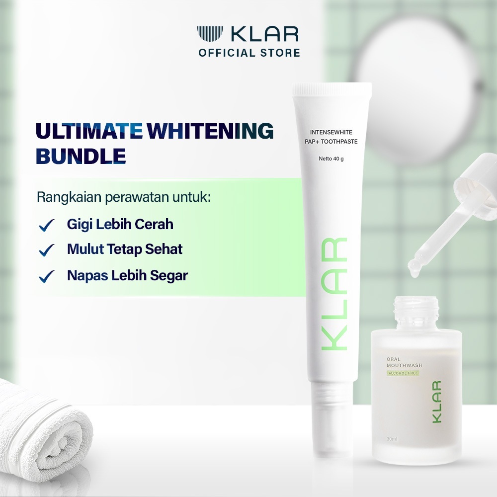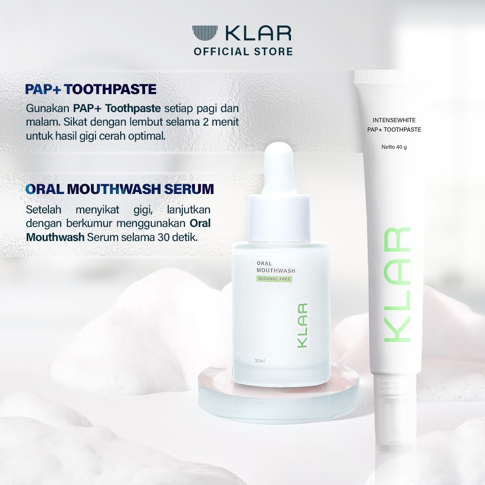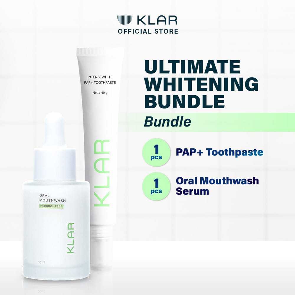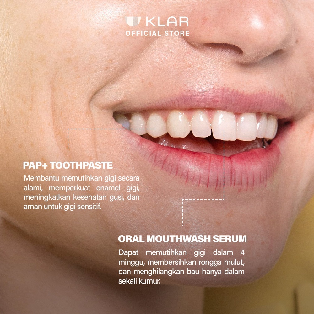 KLAR Ultimate Whitening Bundle - Daily Routine Untuk Gigi Putih | PAP+ Toothpaste + Mouthwash Serum
