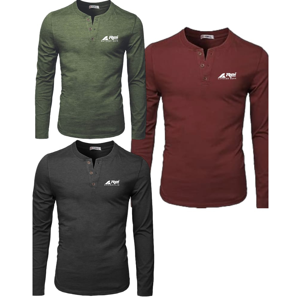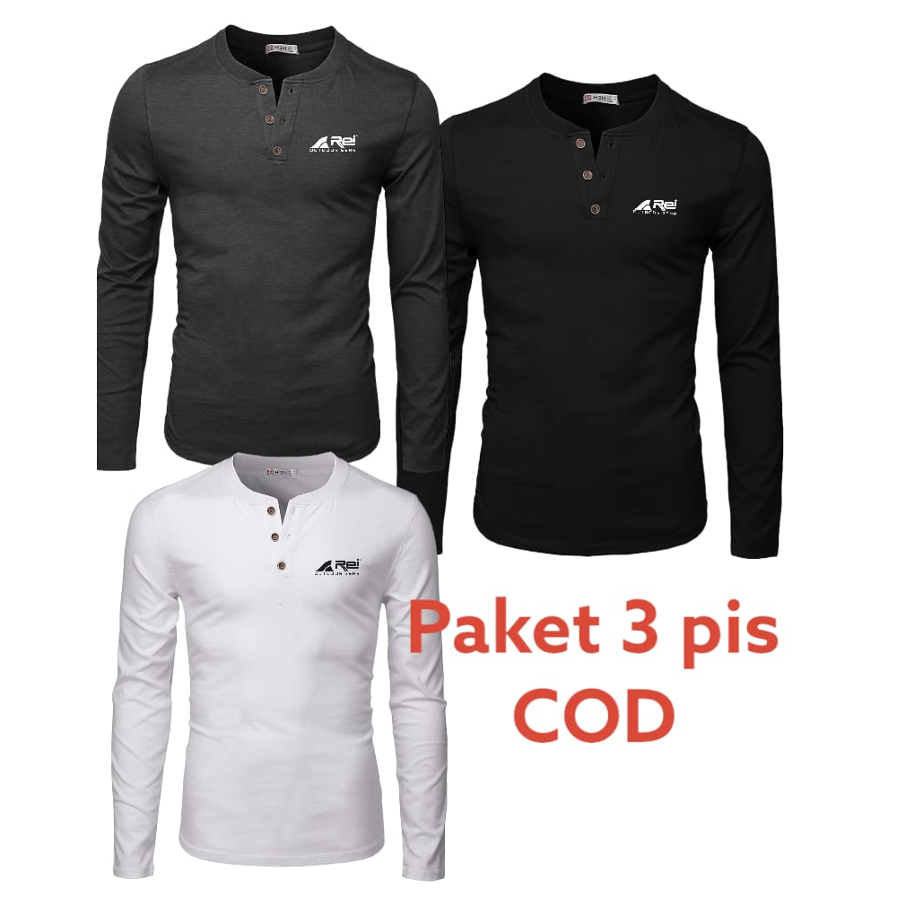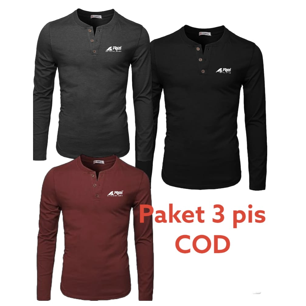 Paket 3Pcs Kaos Kancing Pria Lengan Panjang Katun – Lembut Nyaman Harian