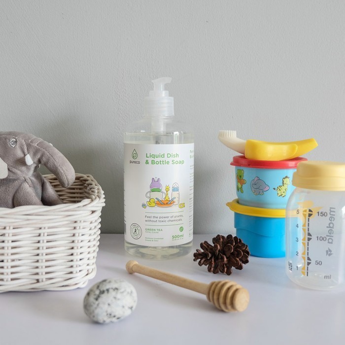 Pureco Liquid Dish and Bottle Soap / Sabun Cuci Botol Bayi Non Toxic Plant Based Travel Size Home Size Refill Pouch