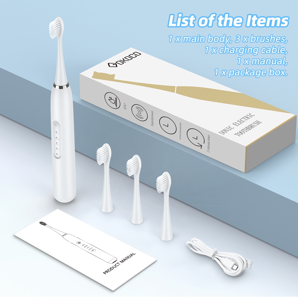 GOKOCO Sonic Electric Toothbrush - Sikat Gigi Elektrik Dewasa dan Anak - Cocok Untuk Pengguna Behel dan Gigi Sensitif - 2 In 1