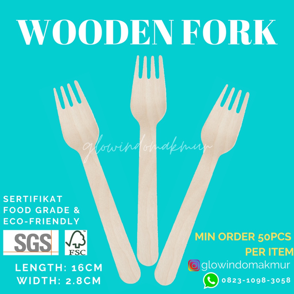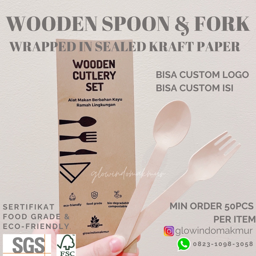 SET Sendok Kayu 16cm + Garpu Kayu 16cm Cover Kraft Paper SEALED Tertutup Rapat HIGIENIS