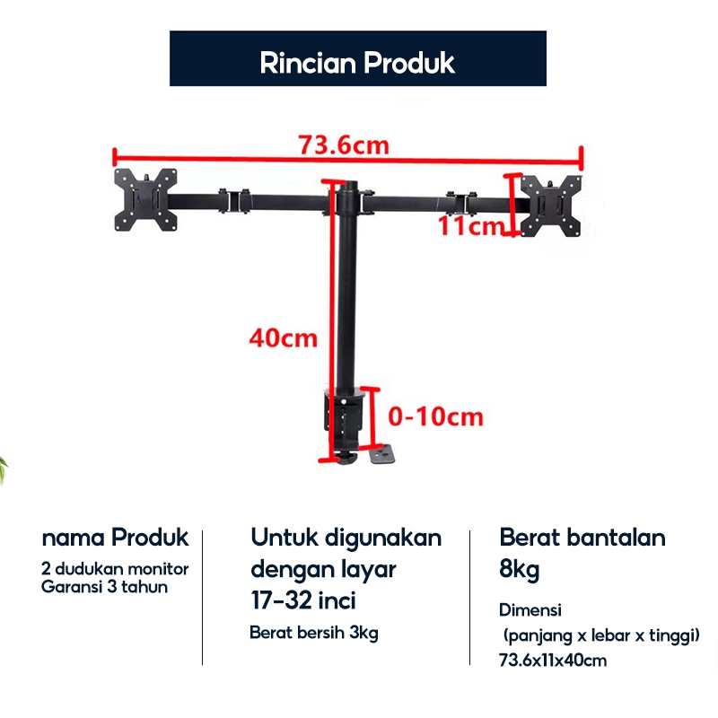 Breket Bracket Monitor stand Single LCD 17-32" Desk Mount monitor stand Braket Hitam