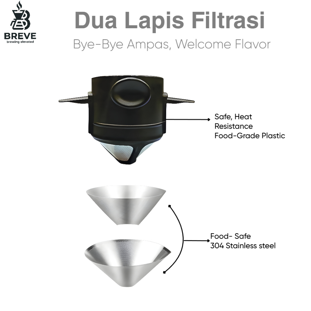 Breve Core Filter Penyaring Kopi Portable Cone Coffee Dripper V60 Coffee Filter Stainless 304