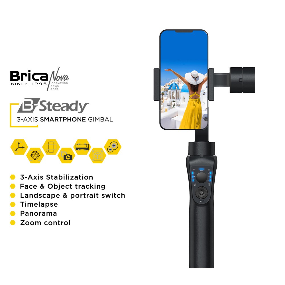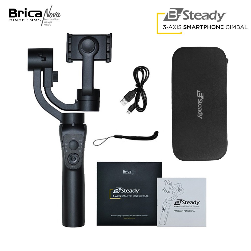 Brica B-Steady - 3 Axis Smartphone & Action Cam Gimbal - Hitam - Free Tripod Mini - BS1
