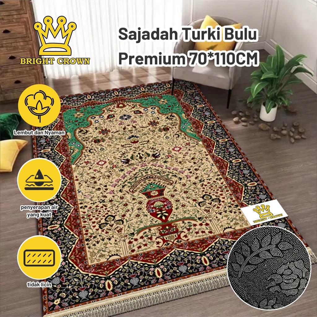 Bright Crown X HappyFamily Sajadah Turkey Turki Dewasa 70X110CM Glossy Bludru Halus/Peralatan Sholat