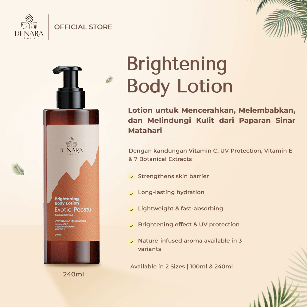 Denara Bali Brightening Body Lotion Exotic Pecatu 240ml | Mencerahkan, Melembabkan, &Melindungi Kulit dari Paparan Sinar Matahari